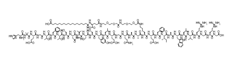 H-D-His-Aib-Glu-Gly-Thr-Phe-Thr-Ser-Asp-Val-Ser-SerTyr-Leu-Glu-Gly-Gln-Ala-Ala-Lys (AEEAc-AEEAc-gamma-Glu-17-carboxyheptadecanoyl)-Glu-Phe-Ile-Ala-Trp-Leu-ValArg-Gly-Arg-Gly-OH