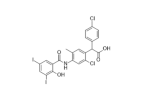 Home / Products / Closantel / Closantel EP Impurity C (INR 11900/- 50 mg, 1 week) Closantel EP Impurity C (INR 11900/- 50 mg, 1 week) Catalogue No: ACT-C010003 Common name: Closantel Carboxylic Acid Impurity CAS: NA Mol. Weight: 682.1 Rel. CAS No NA Shipping Condition Ambient Get Quote Product Overview Chemical Name: (2RS)-[2-chloro-4-[(2-hydroxy-3,5-diiodobenzoyl)amino]-5-methylphenyl](4-chlorophenyl)acetic acid Shipping Temperature: Ambient HSN Code: 38229010 Country of Origin: India Smiles: O=C(O)C(C1=CC(C)=C(NC(C2=CC(I)=CC(I)=C2O)=O)C=C1Cl)C3=CC=C(Cl)C=C3