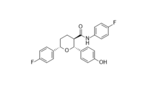 Home / Products / Ezetimibe / Ezetimibe Tetrahydropyran Analog (INR 9900/- 50 mg, in stock) Ezetimibe Tetrahydropyran Analog (INR 9900/- 50 mg, in stock) Catalogue No: ACT-E005005 Common name: Ezetimibe Tetrahydropyran Analog CAS: 1296129-15-1 Mol. Weight: 409.4 Rel. CAS No NA Shipping Condition Ambient Get Quote Product Overview Chemical Name: ((2R,3R,6S)-N,6-bis(4-fluorophenyl)-2-(4-hydroxyphenyl)tetrahydro-2H-pyran-3-carboxamide) Shipping Temperature: Ambient HSN Code: 38229010 Country of Origin: India Smiles: O=C([C@H]1[C@H](C2=CC=C(O)C=C2)O[C@H](C3=CC=C(F)C=C3)CC1)NC4=CC=C(F)C=C4
