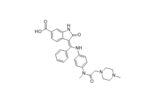 Home / Products / Nintedanib / Nintedanib Carboxylic Acid (INR 9900/- 50 mg, in stock) Nintedanib Carboxylic Acid (INR 9900/- 50 mg, in stock) Catalogue No: ACT-N004001 Common name: NA CAS: 894783-71-2 Mol. Weight: 525.6 Rel. CAS No NA Shipping Condition Ambient Get Quote Product Overview Chemical Name: (Z)-3-(((4-(N-methyl-2-(4-methylpiperazin-1-yl)acetamido)phenyl)amino)(phenyl)methylene)-2-oxoindoline-6-carboxylic acid Shipping Temperature: Ambient HSN Code: 38229010 Country of Origin: India Smiles: O=C1/C(C2=CC=C(C(O)=O)C=C2N1)=C(C3=CC=CC=C3)\NC4=CC=C(N(C)C(CN5CCN(C)CC5)=O)C=C4