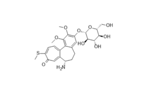 Home / Products / Thiocolchicoside / Thiocolchicoside EP Impurity G (INR 24900/- 50 mg, 4 weeks) Thiocolchicoside EP Impurity G (INR 24900/- 50 mg, 4 weeks) Catalogue No: ACT-T009007 Common name: N-deacetylthiocolchicoside CAS: 177991-81-0 Mol. Weight: 521.6 Rel. CAS No NA Shipping Condition Ambient Get Quote Product Overview Chemical Name: (7S,12aRa)-7-Amino-3-(ß-D-glucopyranosyloxy)-1,2-dimethoxy-10-(methylsulfanyl)-6,7-dihydrobenzo[a]heptalen-9(5H)-one Shipping Temperature: Ambient HSN Code: 38229010 Country of Origin: India Smiles: COC(C(OC)=C(O[C@@H]([C@@H]([C@@H](O)[C@@H]1O)O)O[C@@H]1CO)C=C2CC[C@H](N)C3=C4)=C2C3=CC=C(SC)C4=O