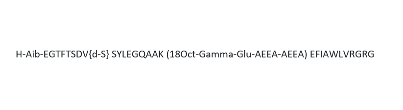 H-His-Aib-Glu-Gly-Thr-D-Phe-Thr-Ser-Asp-Val-Ser-Ser-Tyr-Leu-Gly-Gln-Gln-Ala-Ala-Lys-(AEEAc-AEEAc-Gamma-Glu-17-carboxy heptadecanoyl)-Glu-Phe-lle-Ala-Trp-Leu-Val-Arg-Gly-Arg-Gly-OH